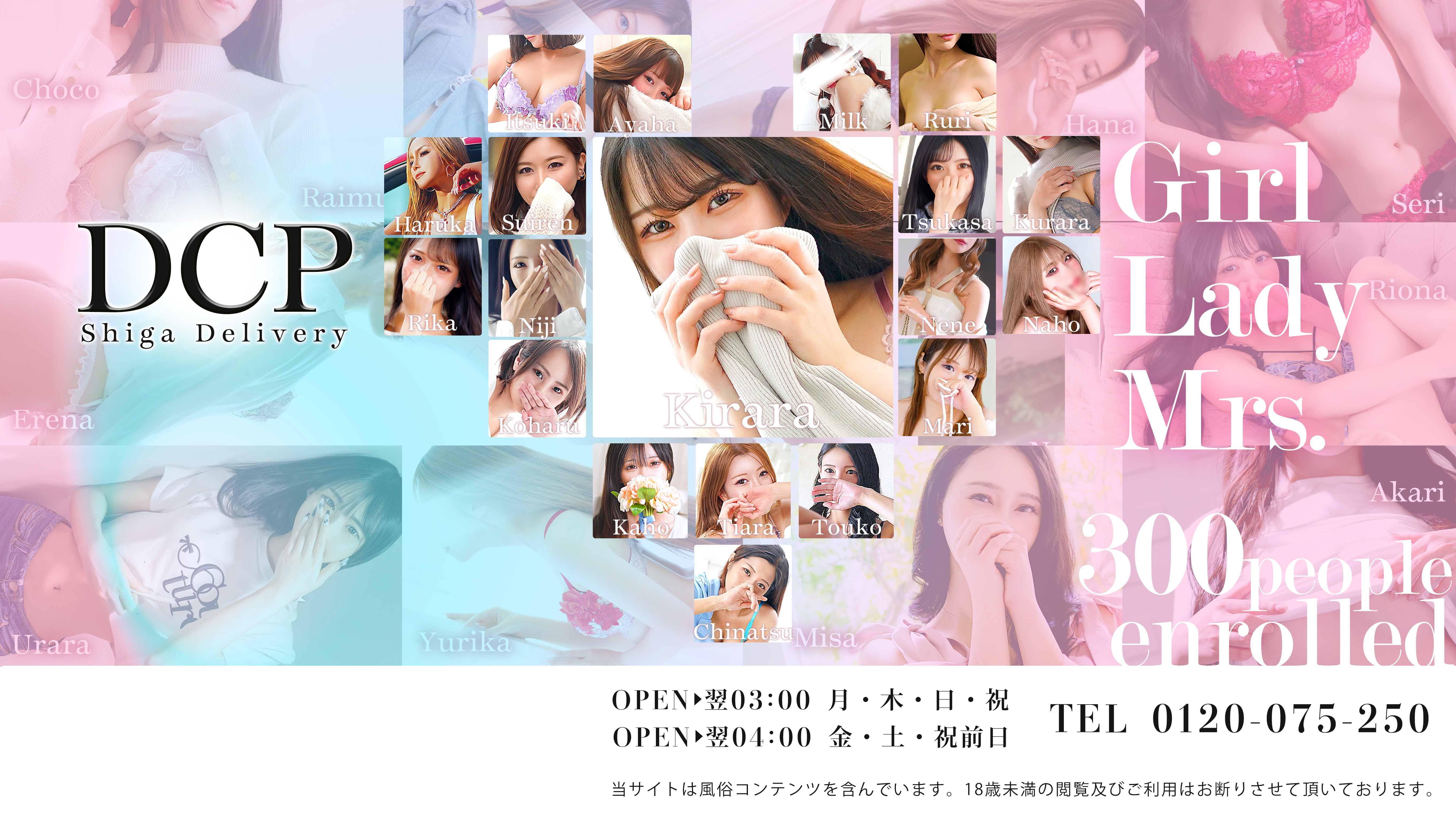 滋賀県で最も在籍数の多いDCPは、在籍数だけでは無くキャストの質と料金のバランスを最大限に考慮した満足度の高いお店を常に念頭に置き運営致しております。